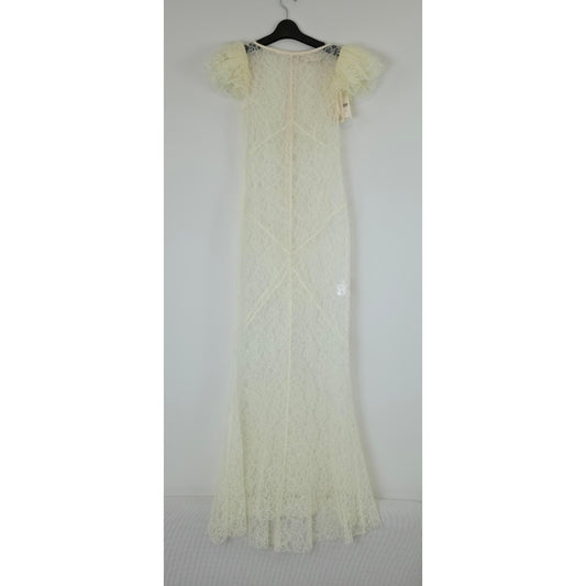 DE LA VALI Ivory Nephele Lace Fishtail Maxi Dress Ivory Sz US 4 NWT