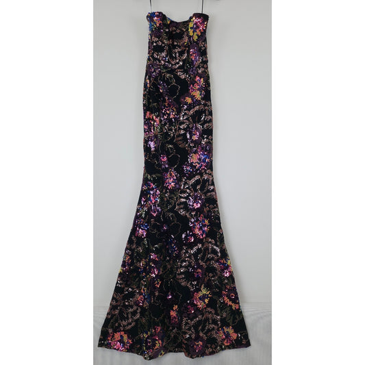 Helsi Helen Strapless Floral Stretch Sequin Mermaid Maxi Dress Sz Small NWT