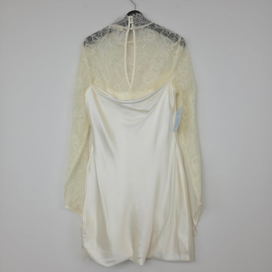 De La Vali Ivory Croissant Long-Sleeve Lace Mini Dress Sz 12 NWT