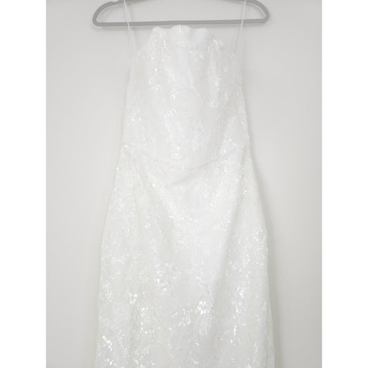 Helsi White Leslie Strapless Sequin Lace Column Midi Dress Sz Medium