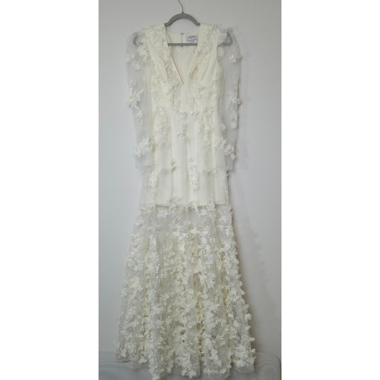 Helsi Clara Puff-Sleeve Sheer Floral Appliqué Maxi Dress Sz Medium NWT