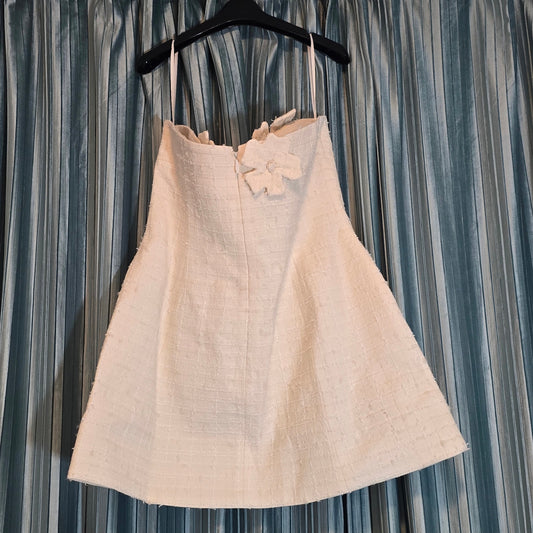 LEO LIN Snow Rosario Strapless Floral Appliqué Tweed Mini Dress Sz 12 NWT