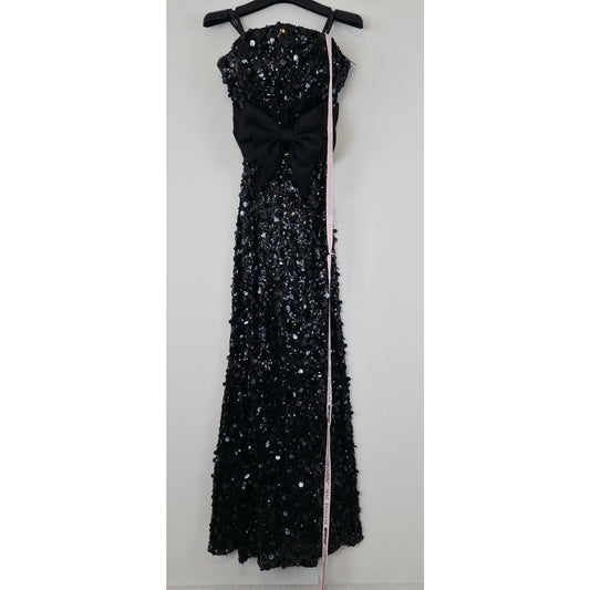 Ieena Mac Duggal Black Strapless Sequin Evening Gown With Bow Sz 4 NWT