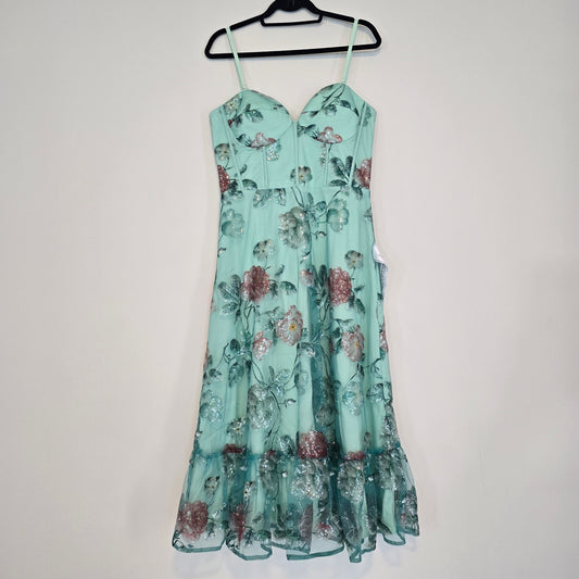 Mac Duggal Sleeveless Sequin Floral Appliqué Midi Dress Sz 10 NWT