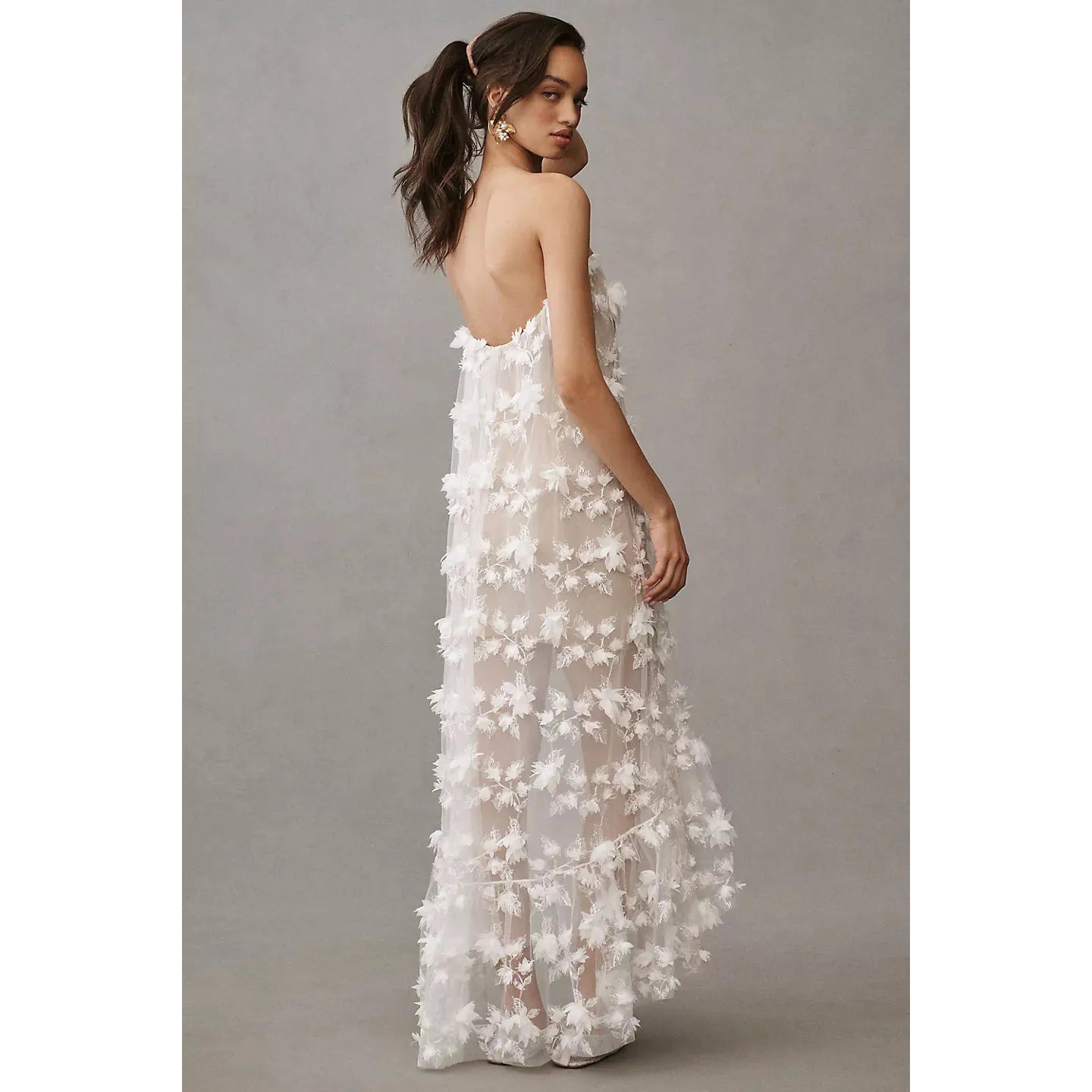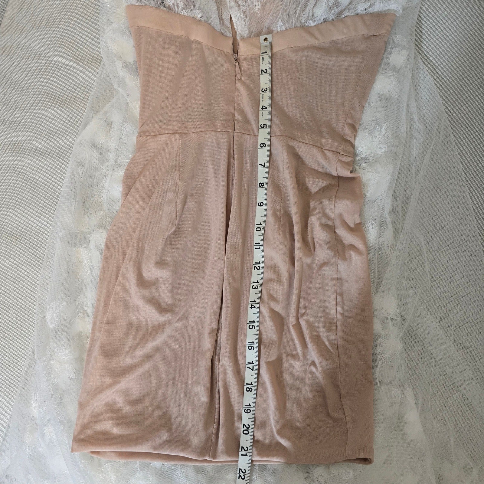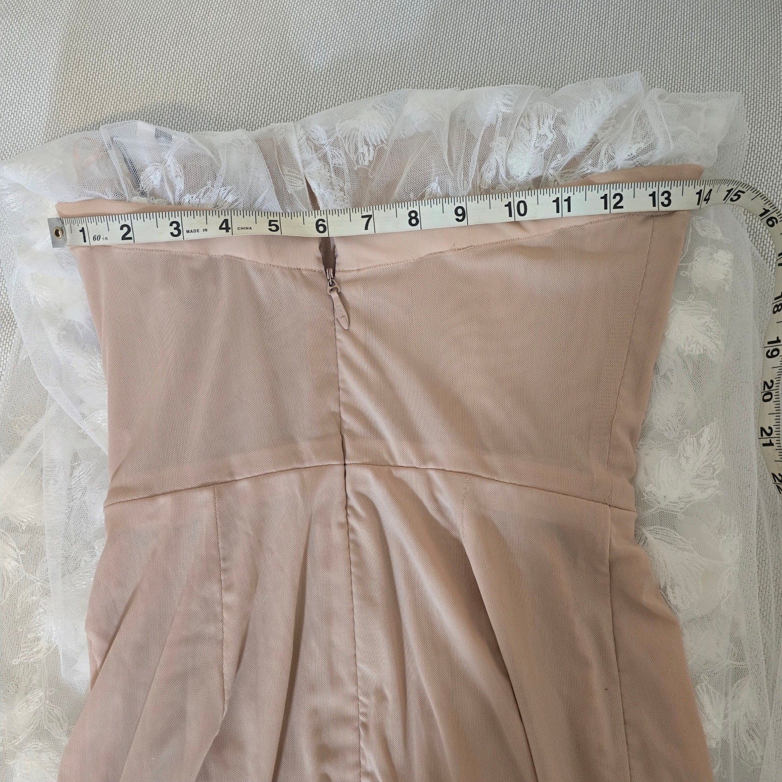 Anthropologie Athena Strapless Sheer 3D Flower Nude interior Midi Dress Sz Small