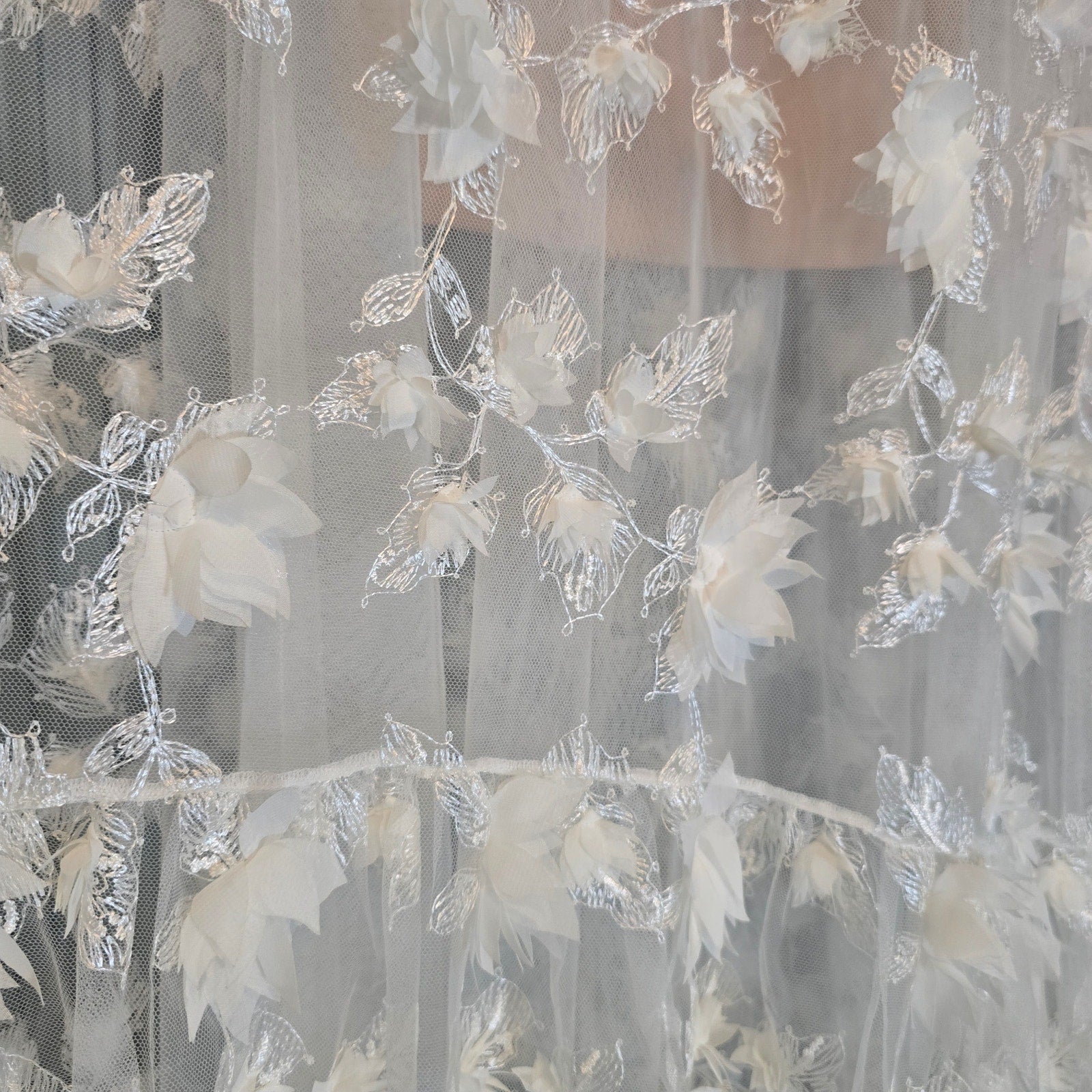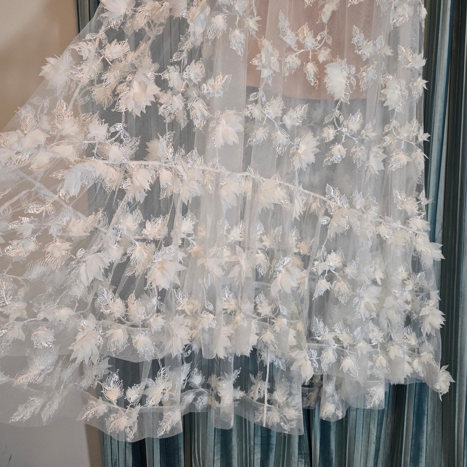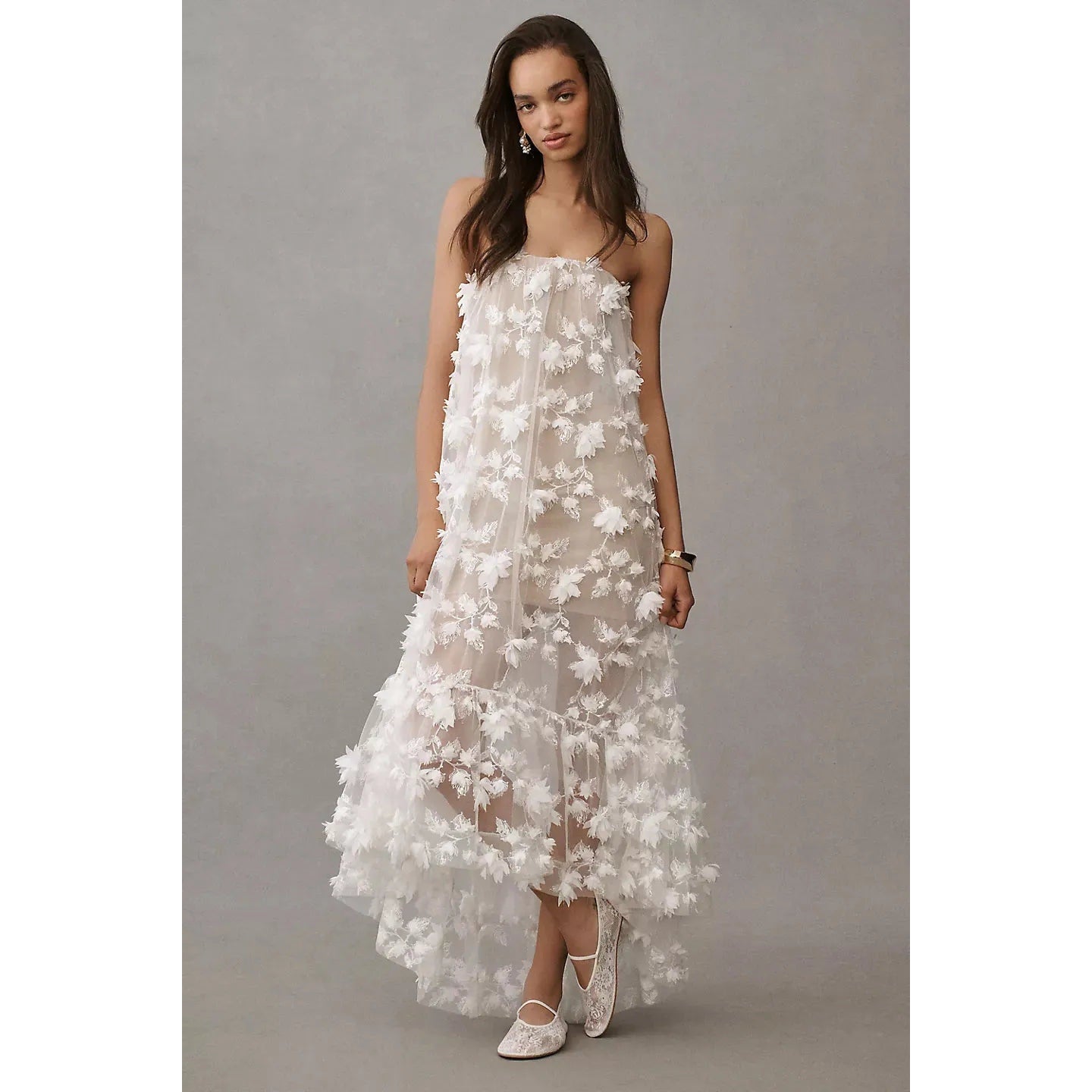 Anthropologie Athena Strapless Sheer 3D Flower Nude interior Midi Dress Sz Small
