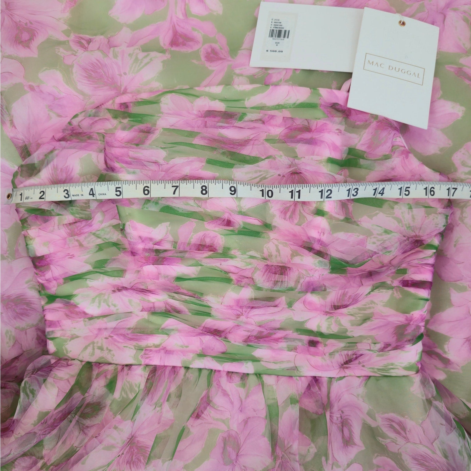 Anthropologie Mac Duggal Multi Pink Strapless Chiffon Maxi Dress Sz 8