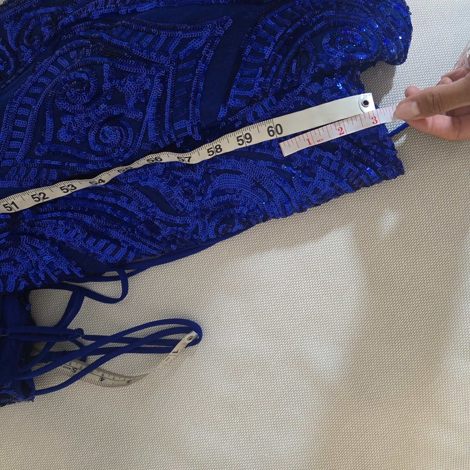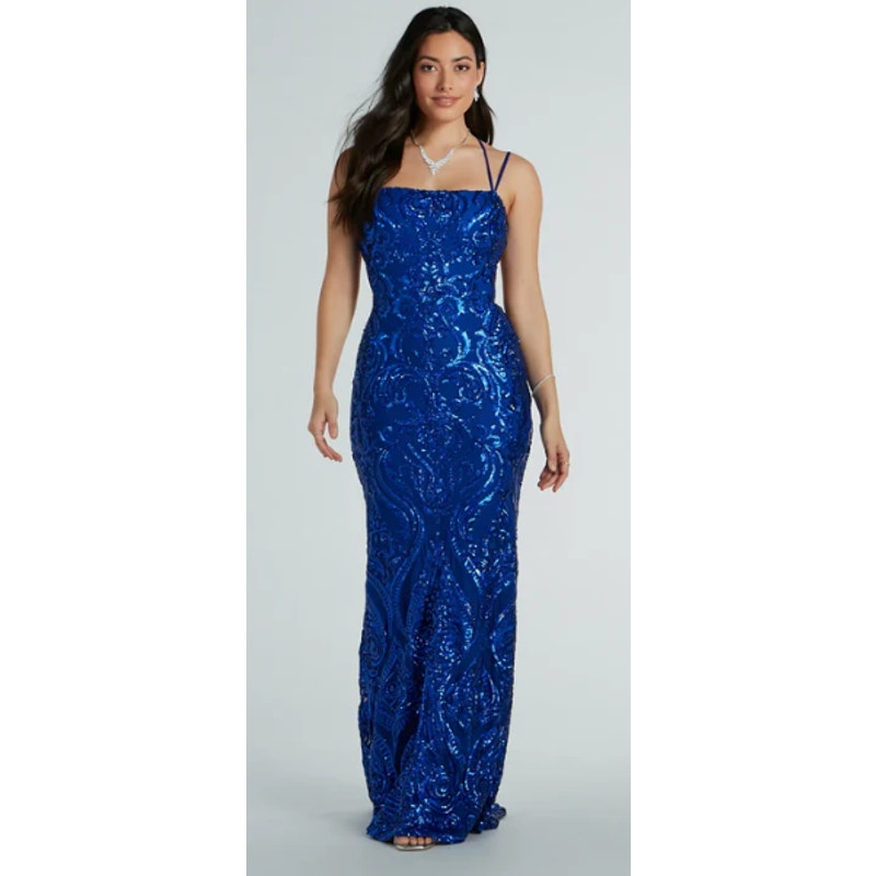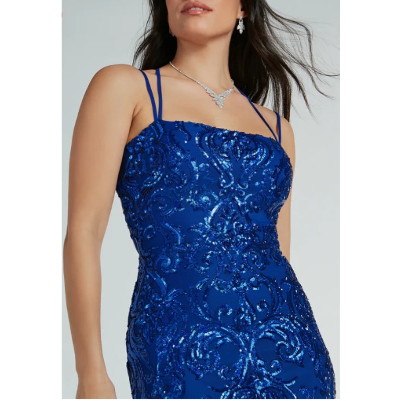 Delaney Royal Blue Lace-Up Mermaid Sequin Formal Formal Dress Size XS (748)