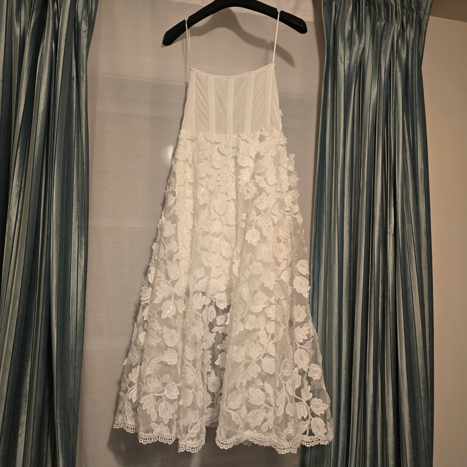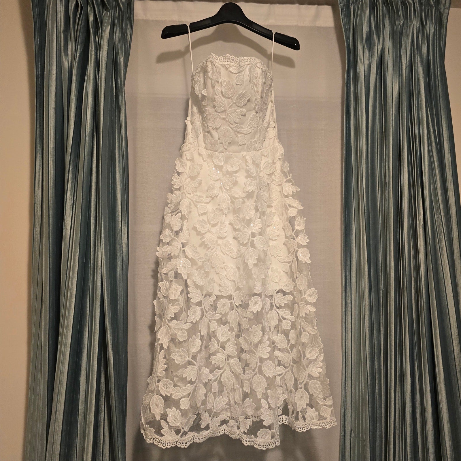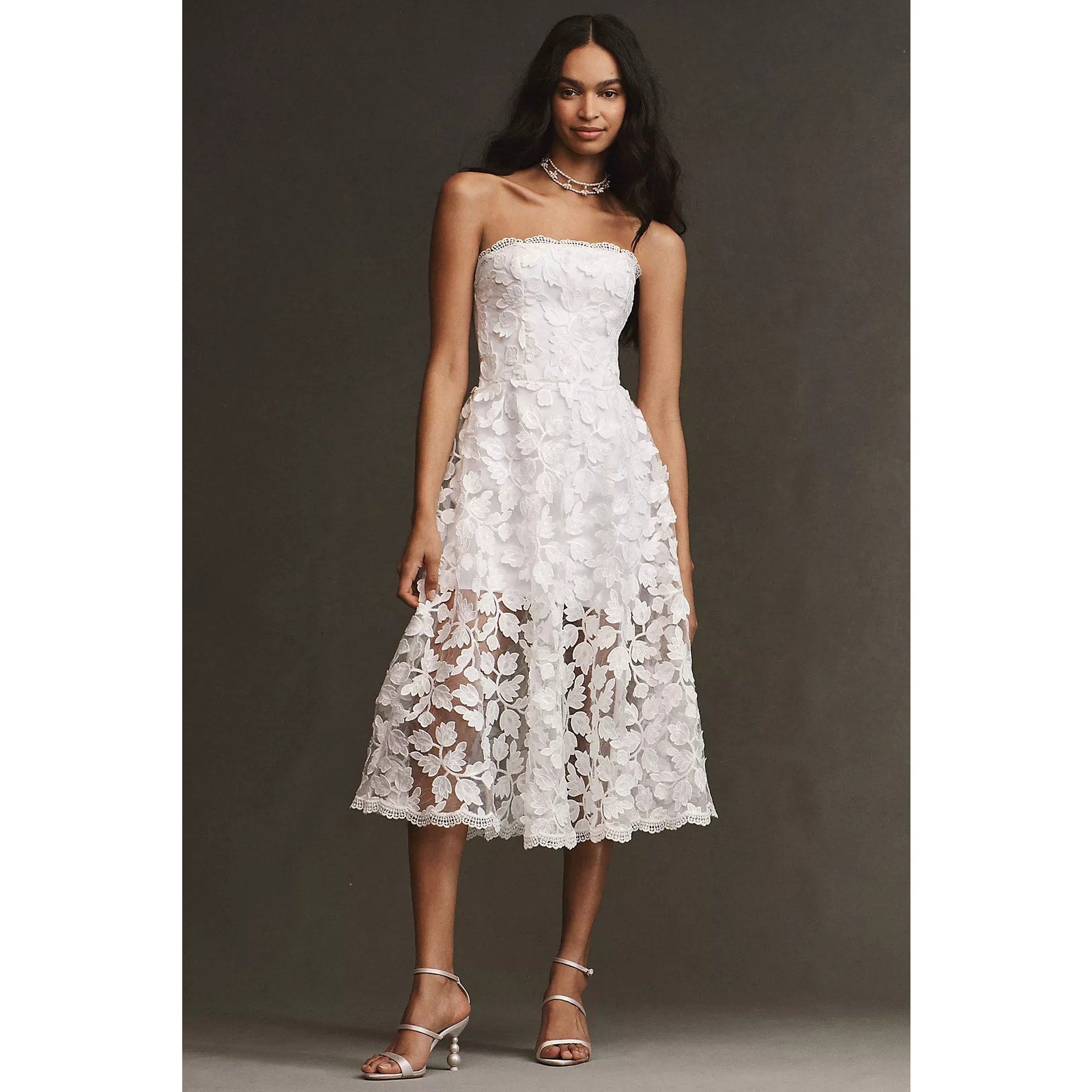 Helsi White Florence Strapless Embroidered A-Line Midi Dress Sz XS
