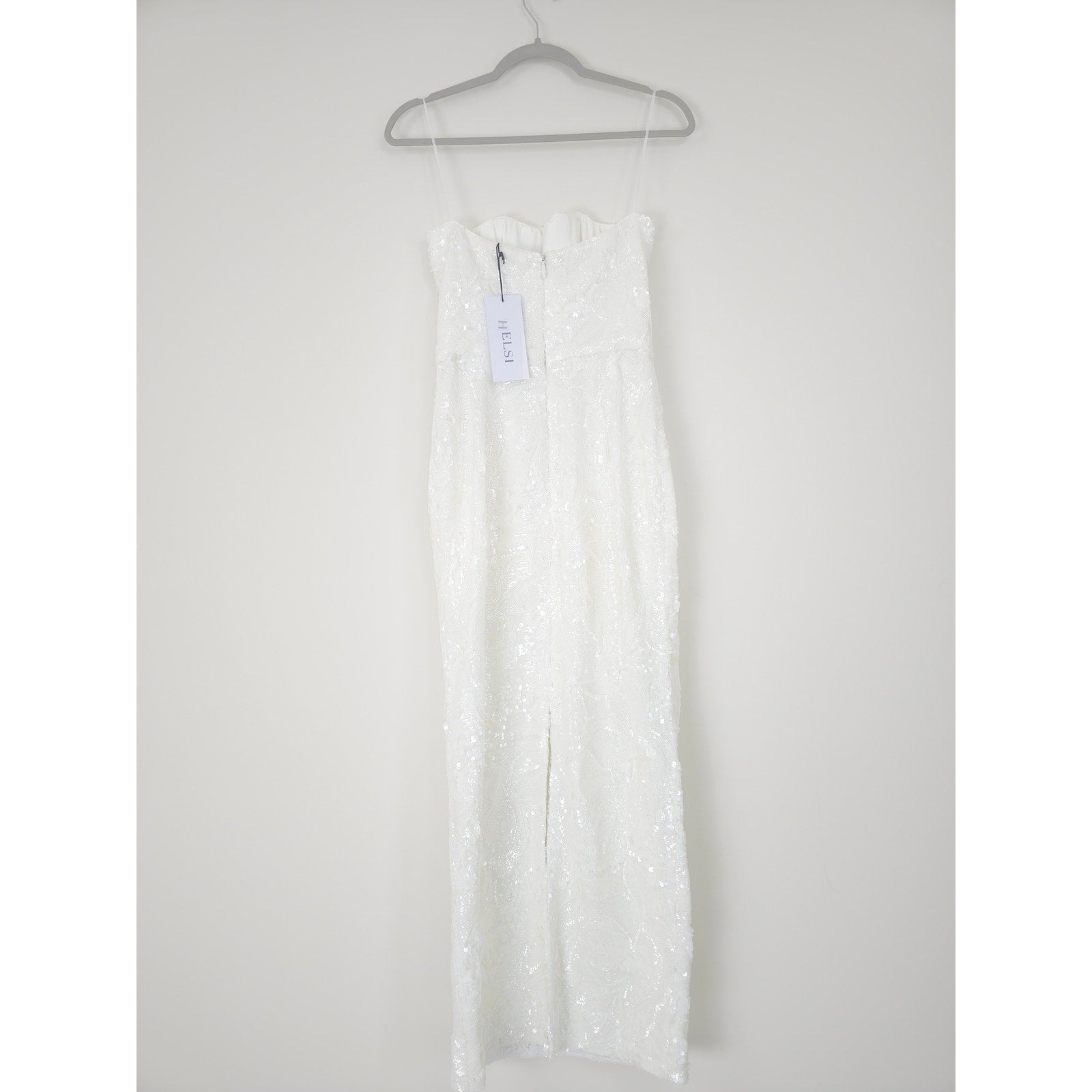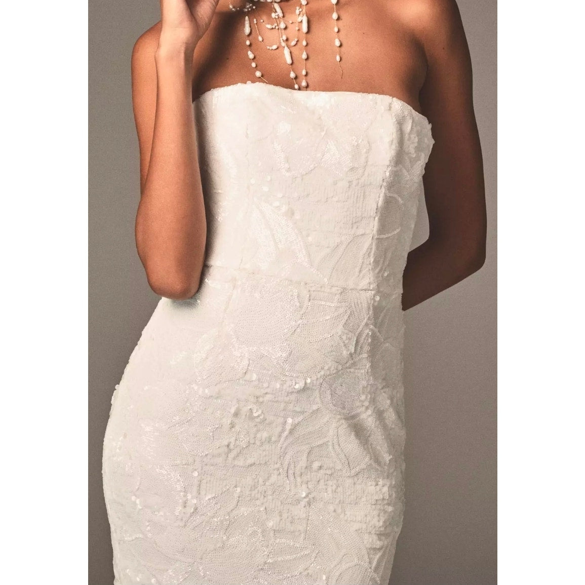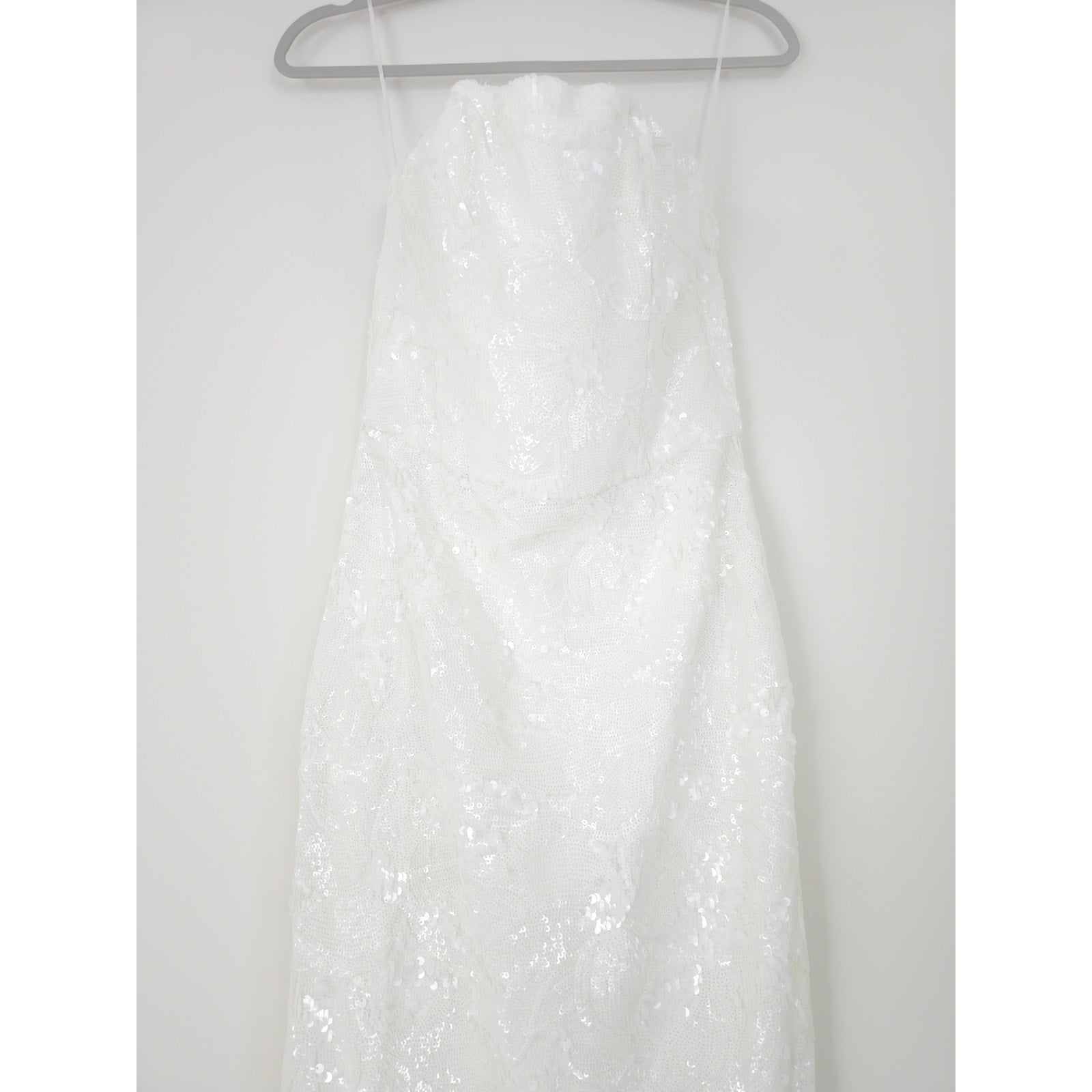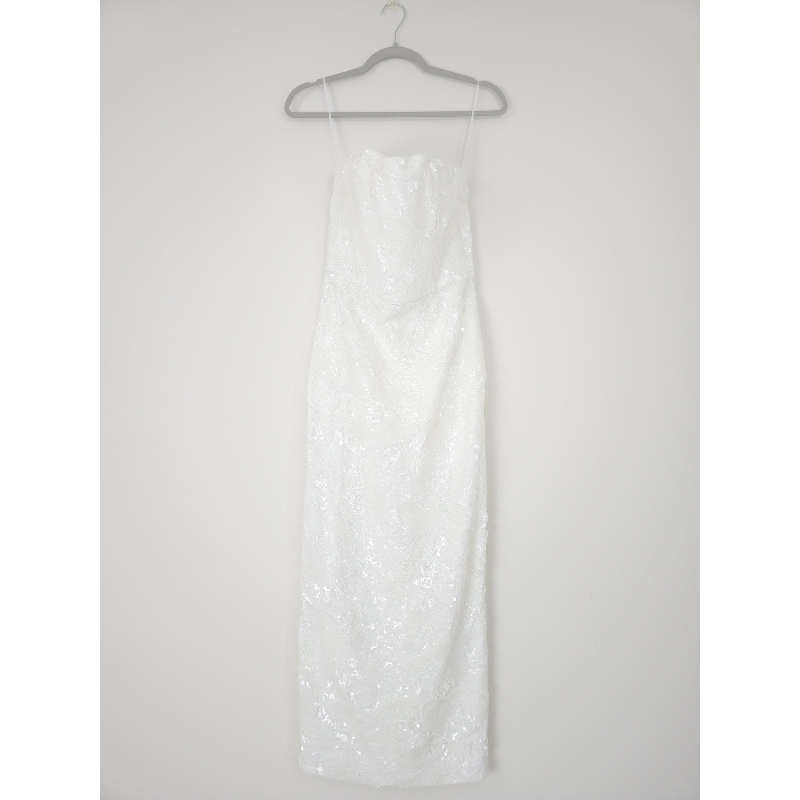Helsi White Leslie Strapless Sequin Lace Column Midi Dress Sz Medium