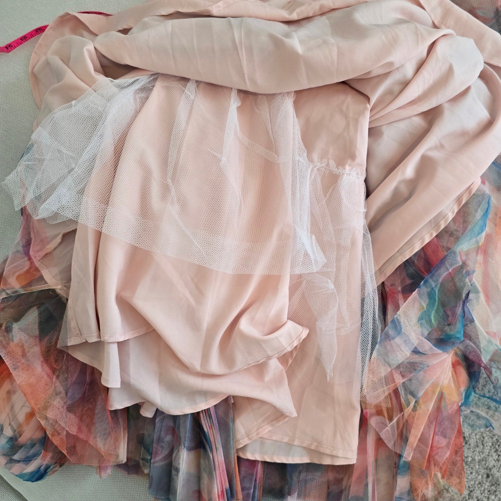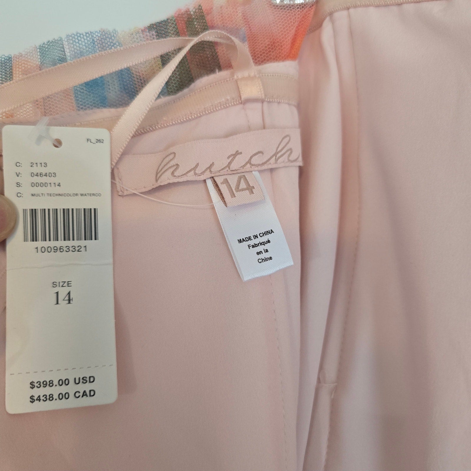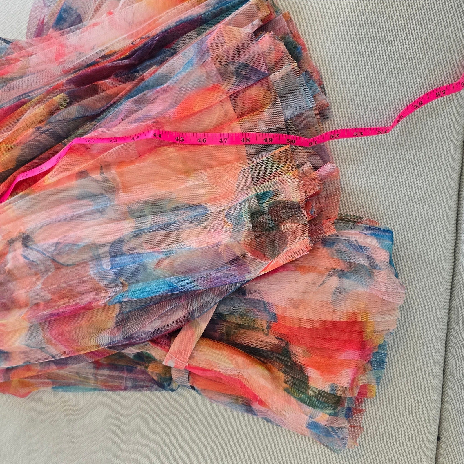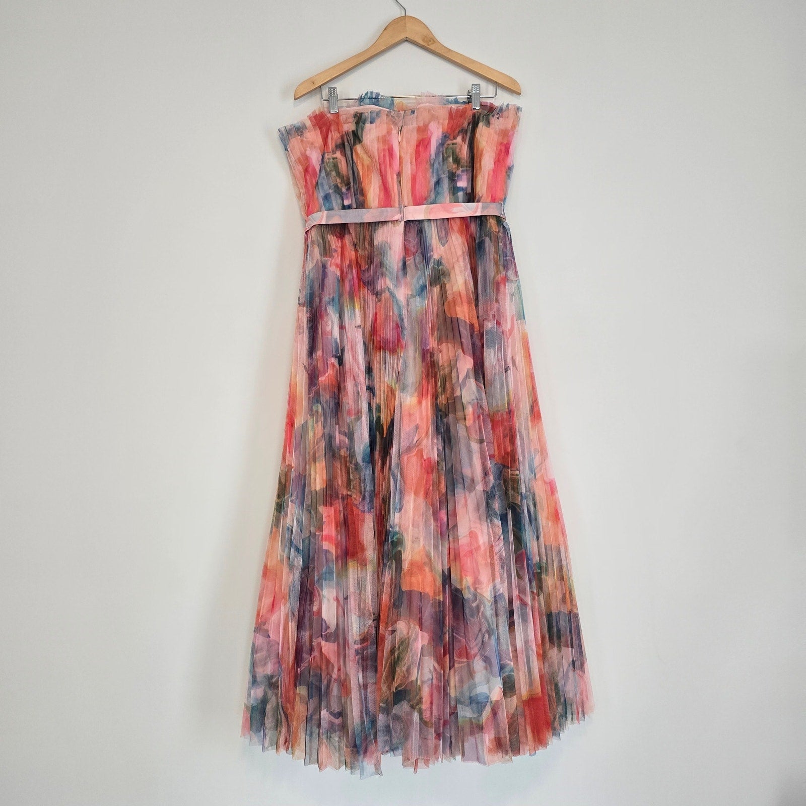 Hutch Coral Multi Swirl Strapless Pleated Fit Flare Belted Midi Dress Sz 14