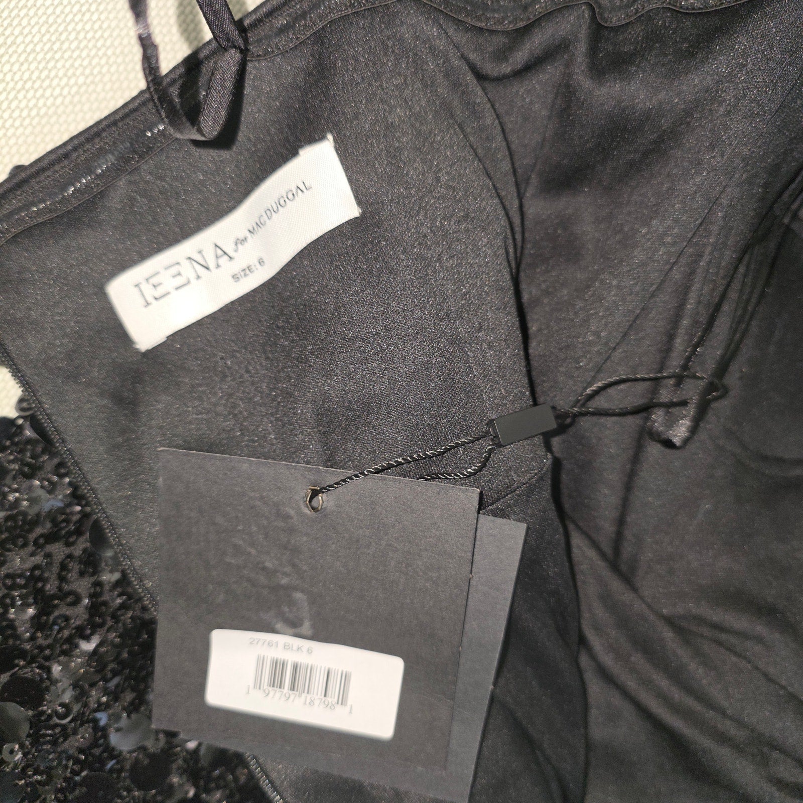 Ieena Mac Duggal Black Strapless Sequin Evening Gown With Bow Sz 6 NWT
