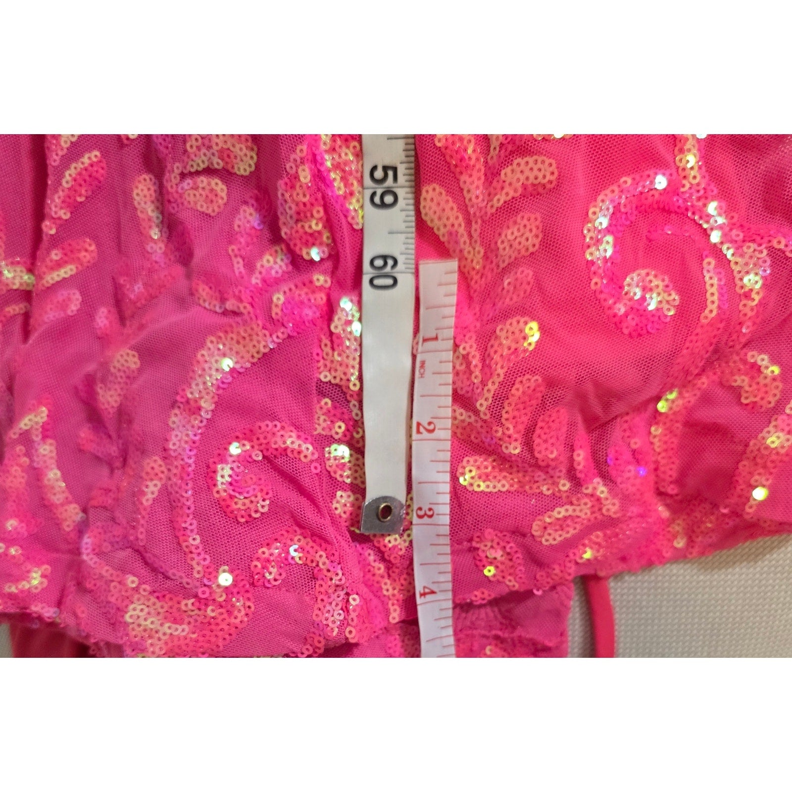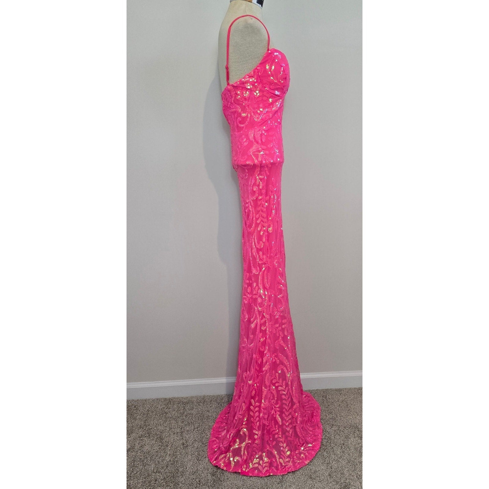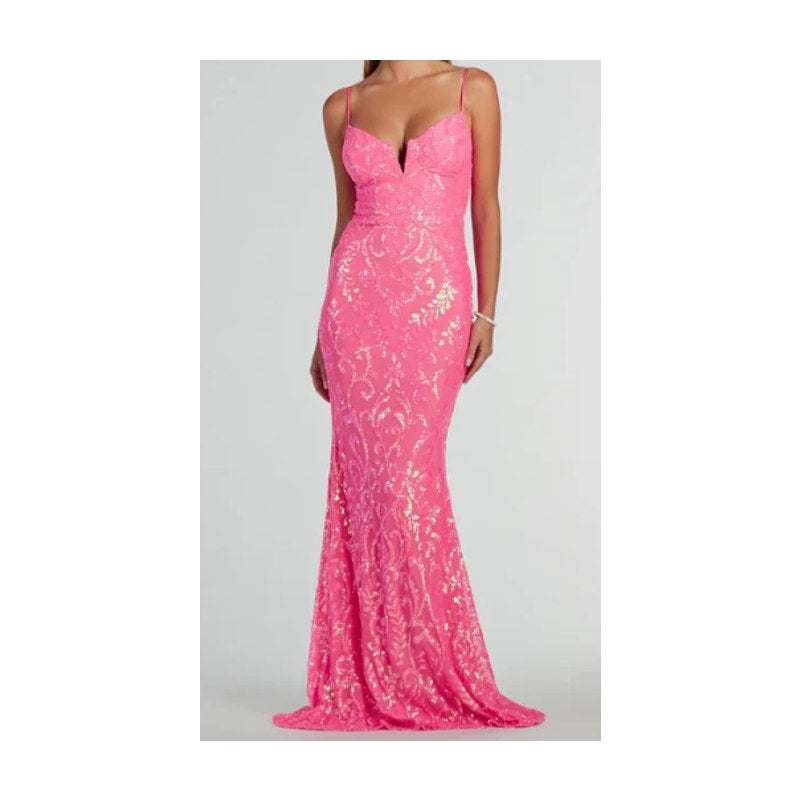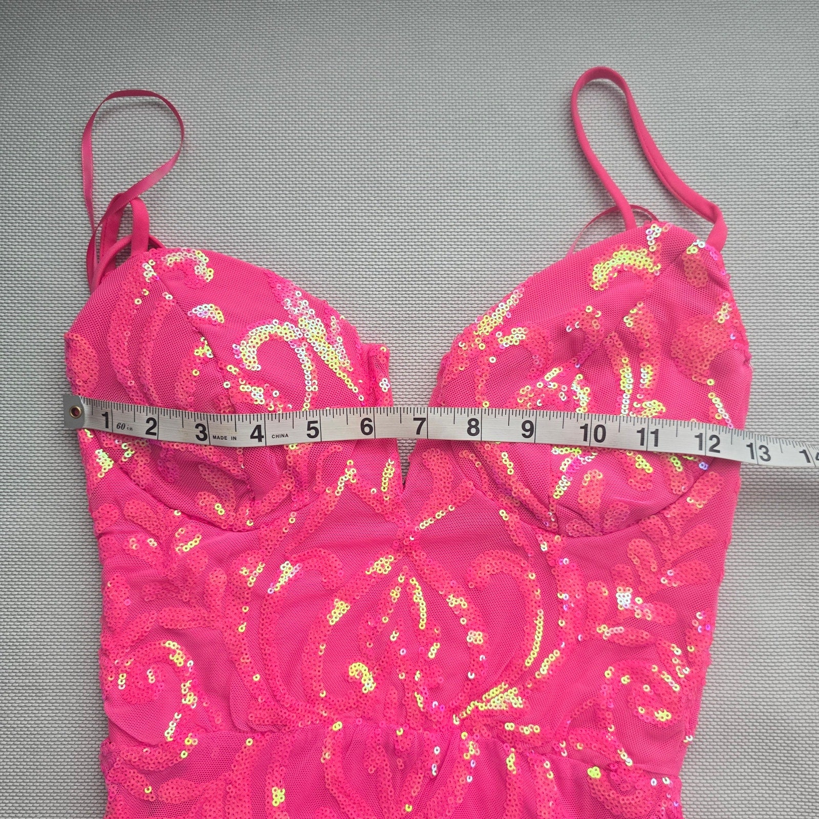 Julissa NEON PINK V-Neck Sequin Mesh Mermaid Dress Sz XS