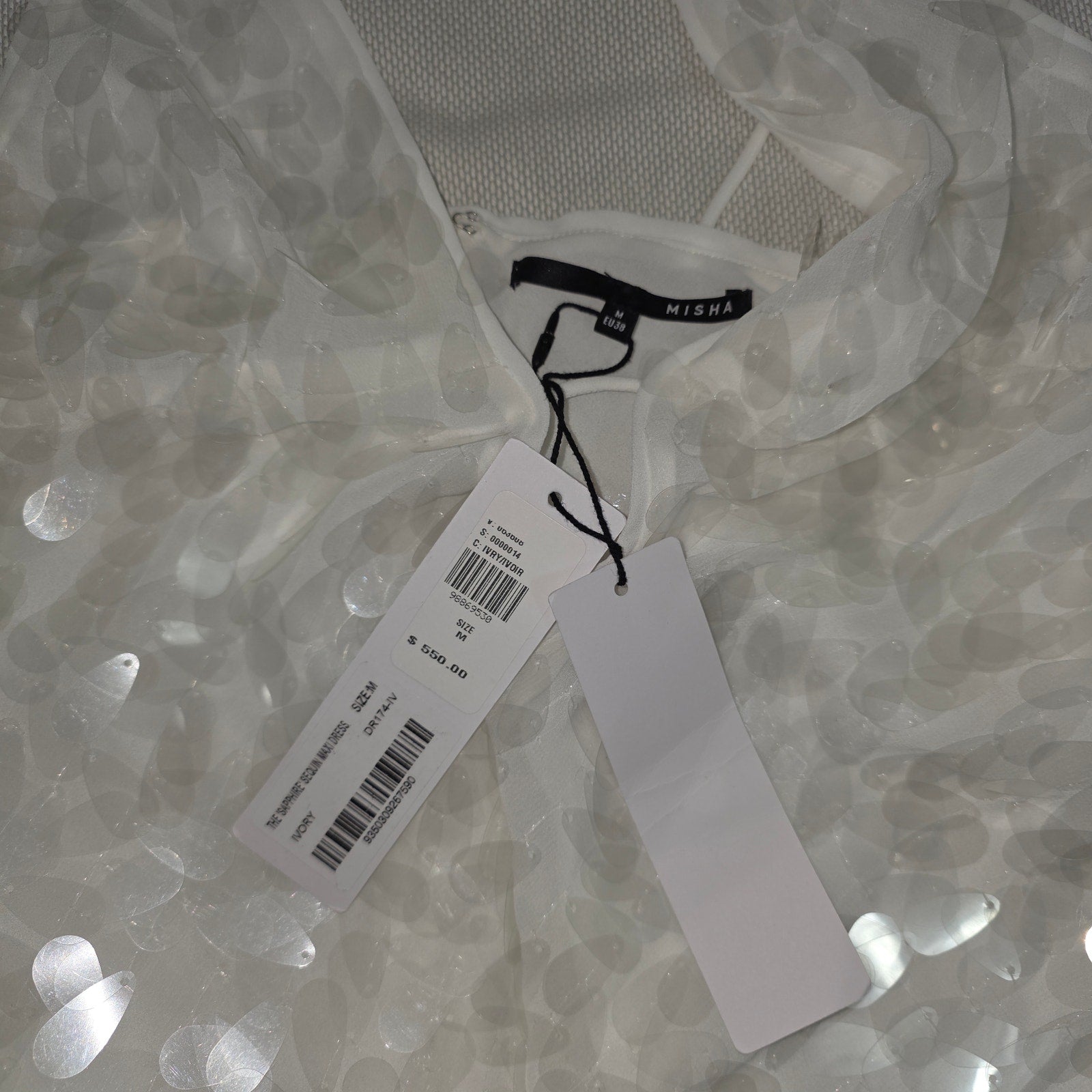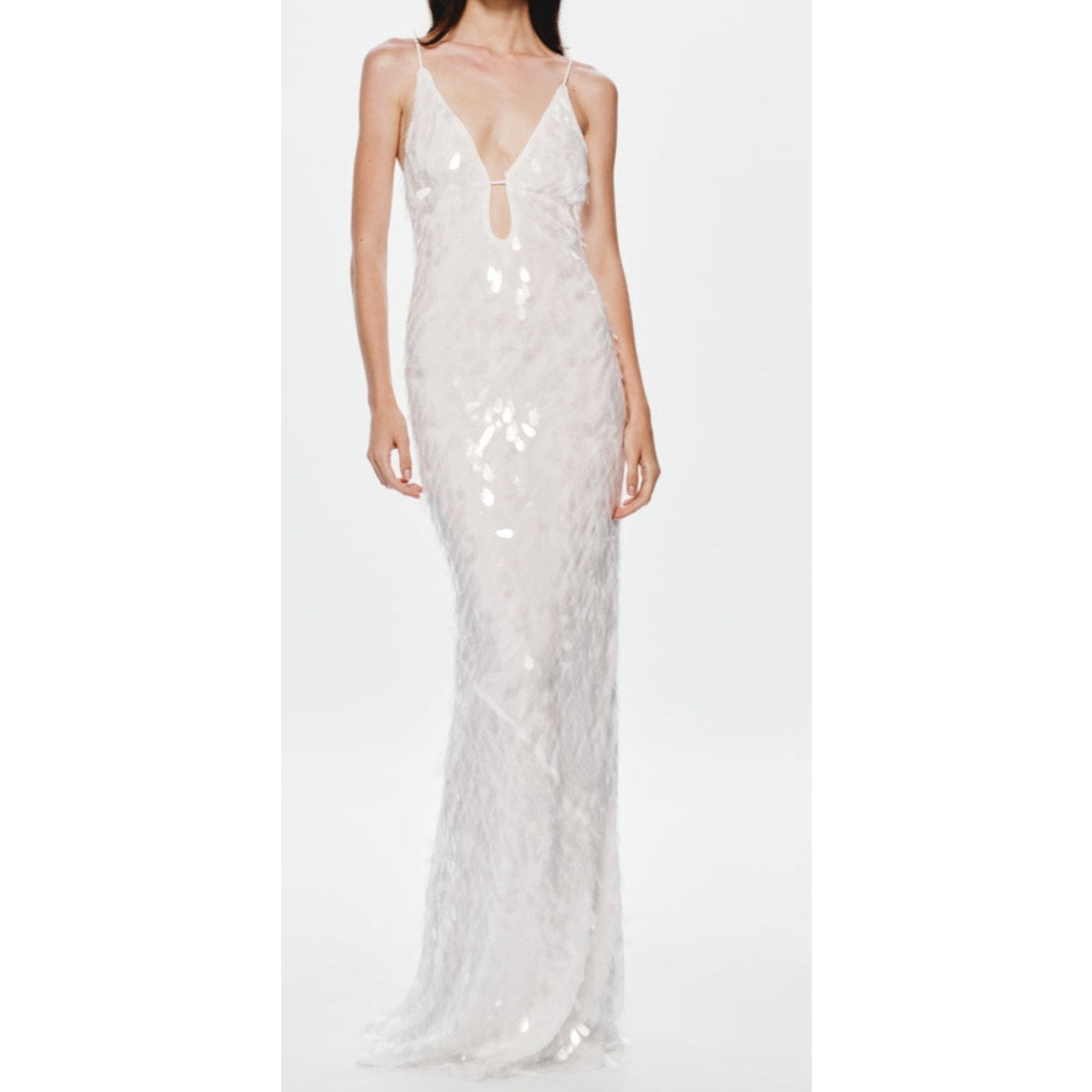 MISHA The Sapphire Sequin Maxi Dress in Ivory Sz M NWT