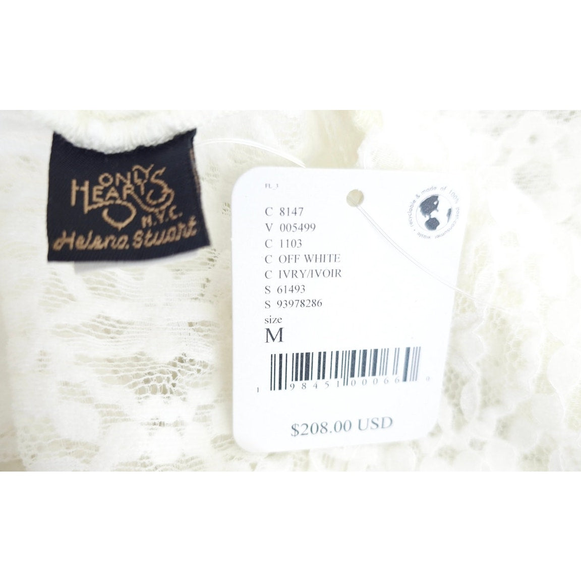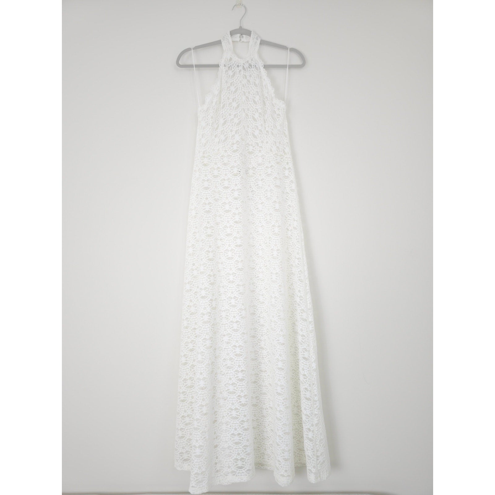 Only Hearts OFF White Sheer Lace Adorn Aline Maddalena Dianna Maxi Gown Sz M