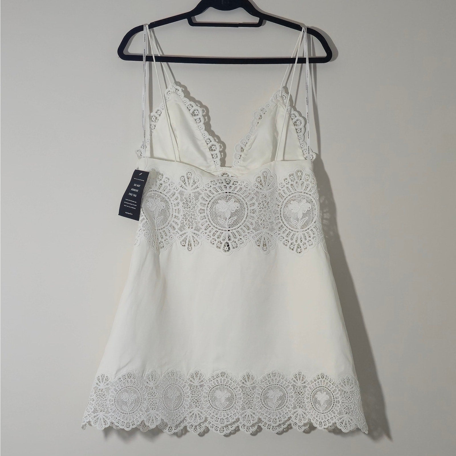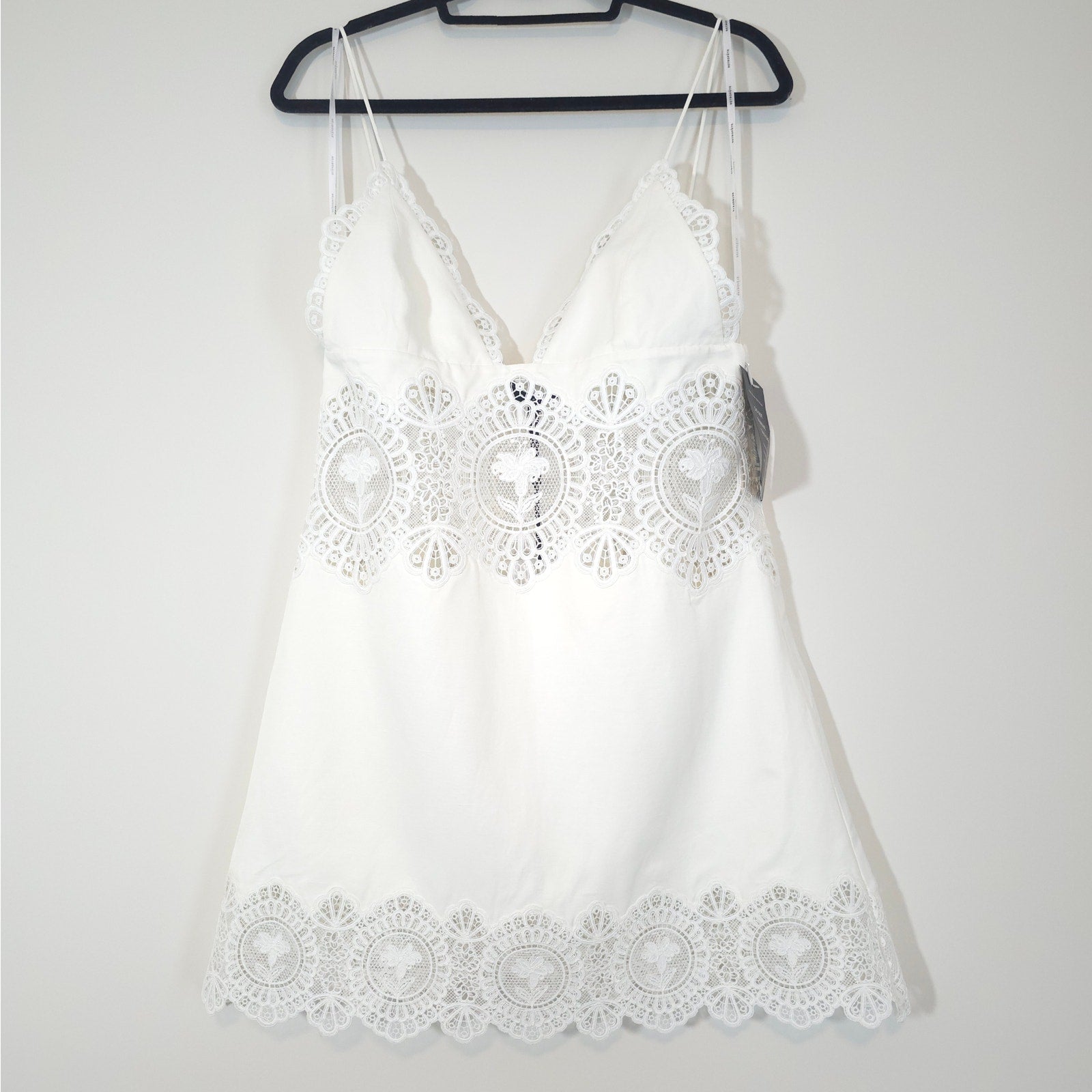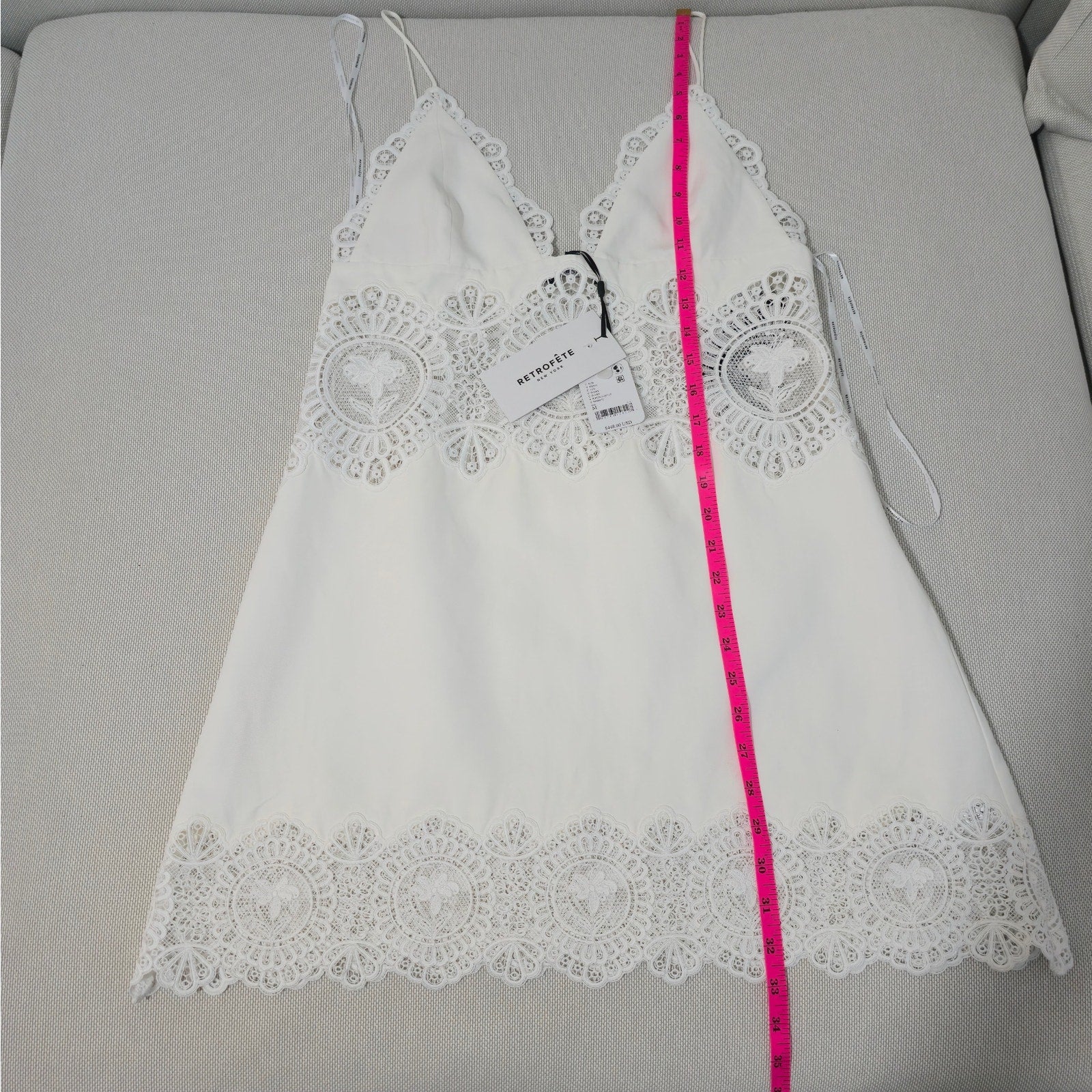 Retrofête Ivory Karlie Open Lace Paneling and scalloped Hem Mini Dress Sz Medium