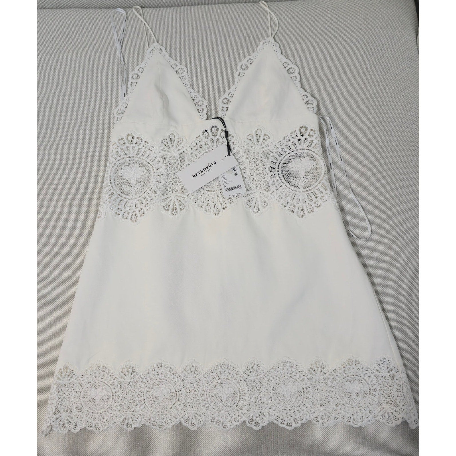 Stunning Retrofête Ivory Karlie mini dress in size medium! This dress is perfect for a night out or a special occasion.