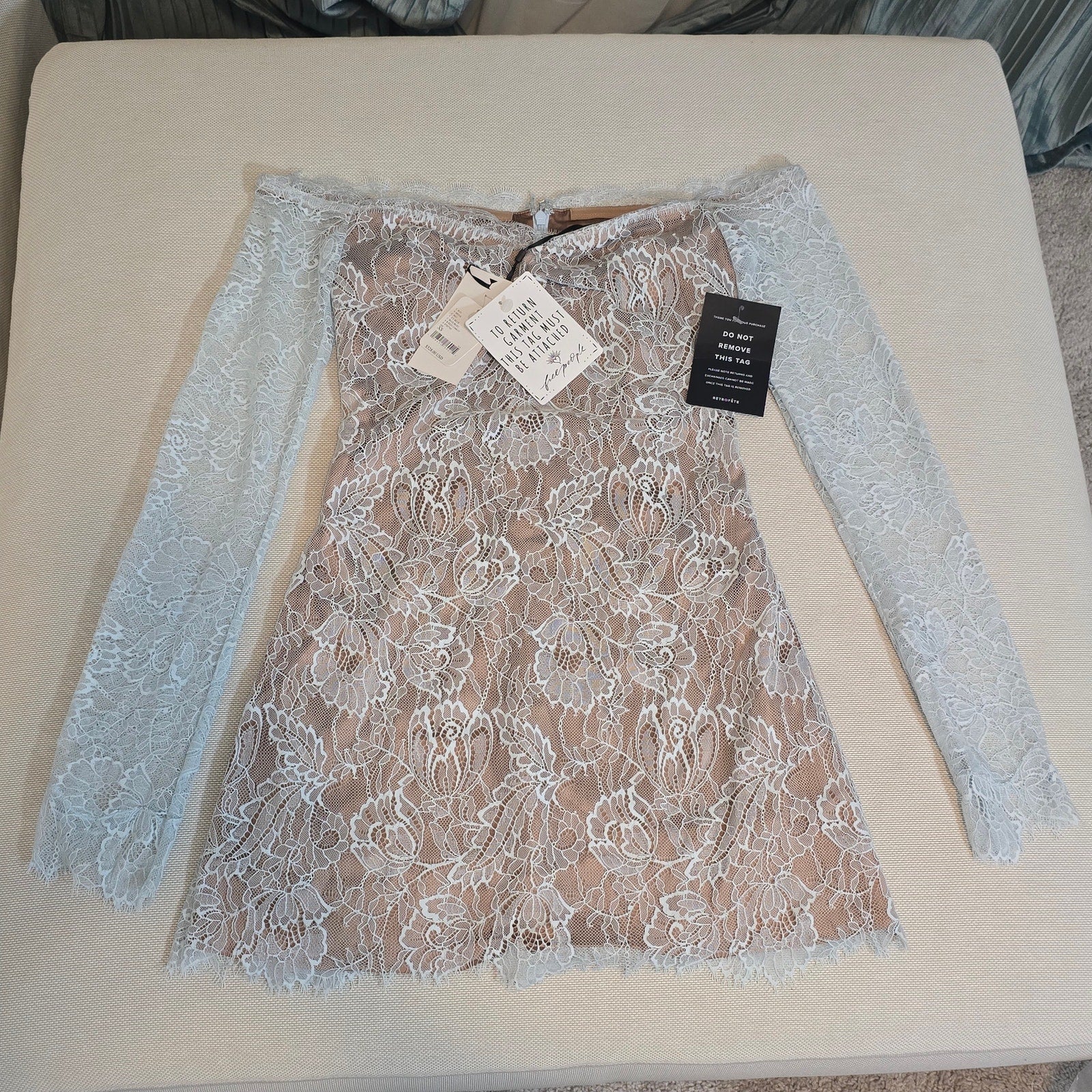 Retrofete Light Blue Nude Lining Aino Lace Mini Dress Sz XS