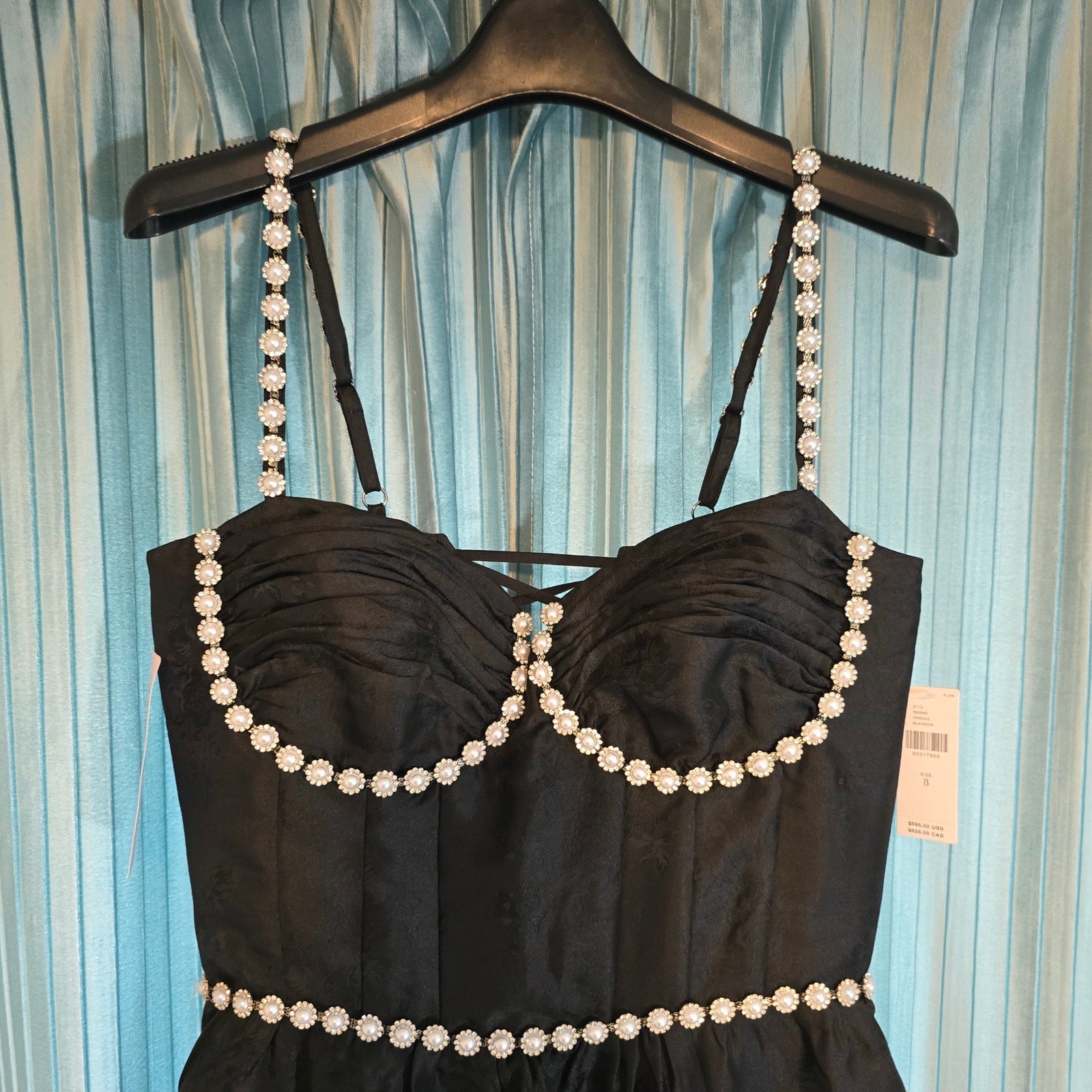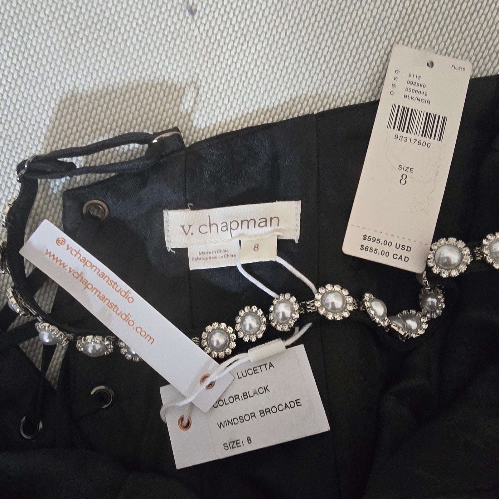 V. Chapman The Lucetta Gown Dress in Black Windsor Brocade Sz 8