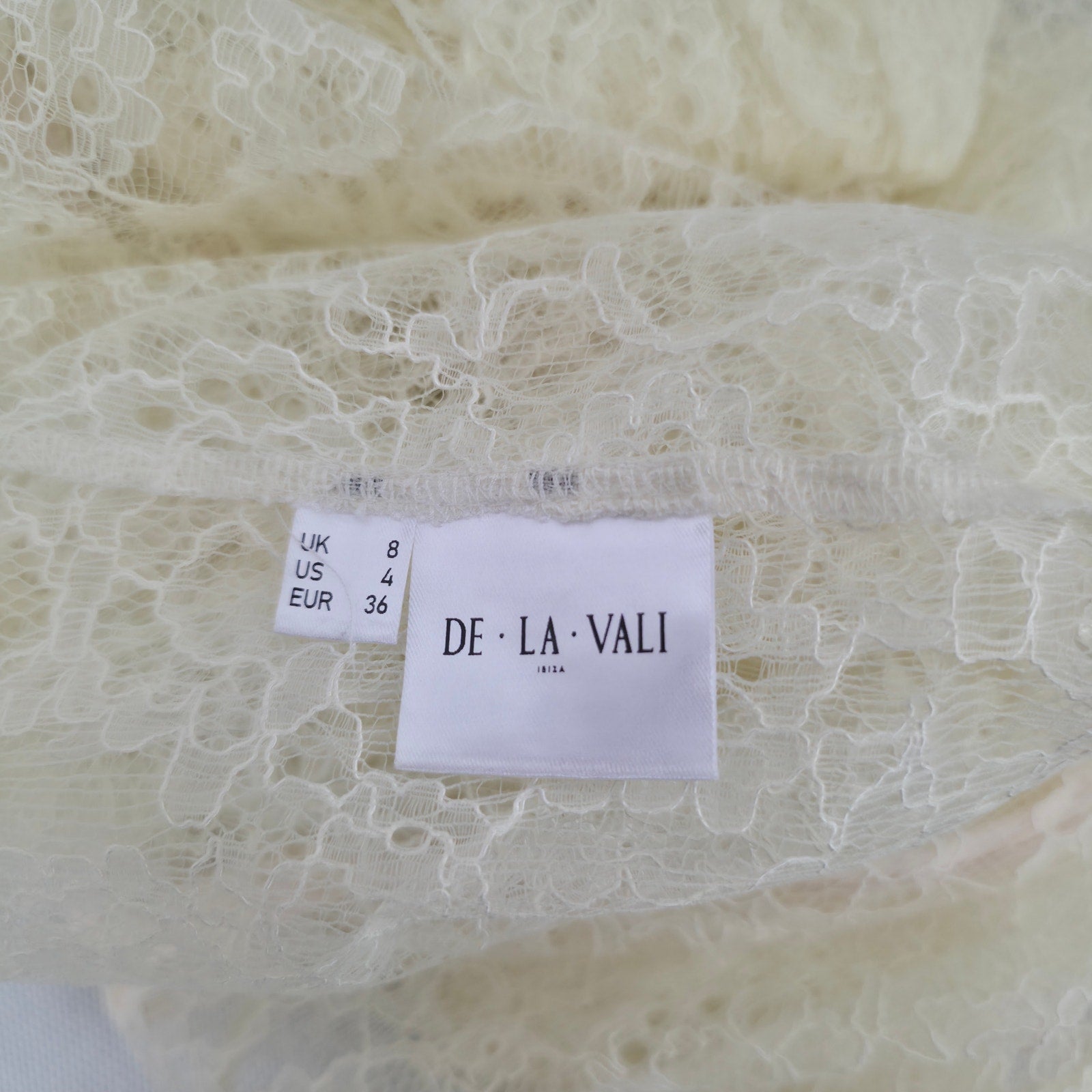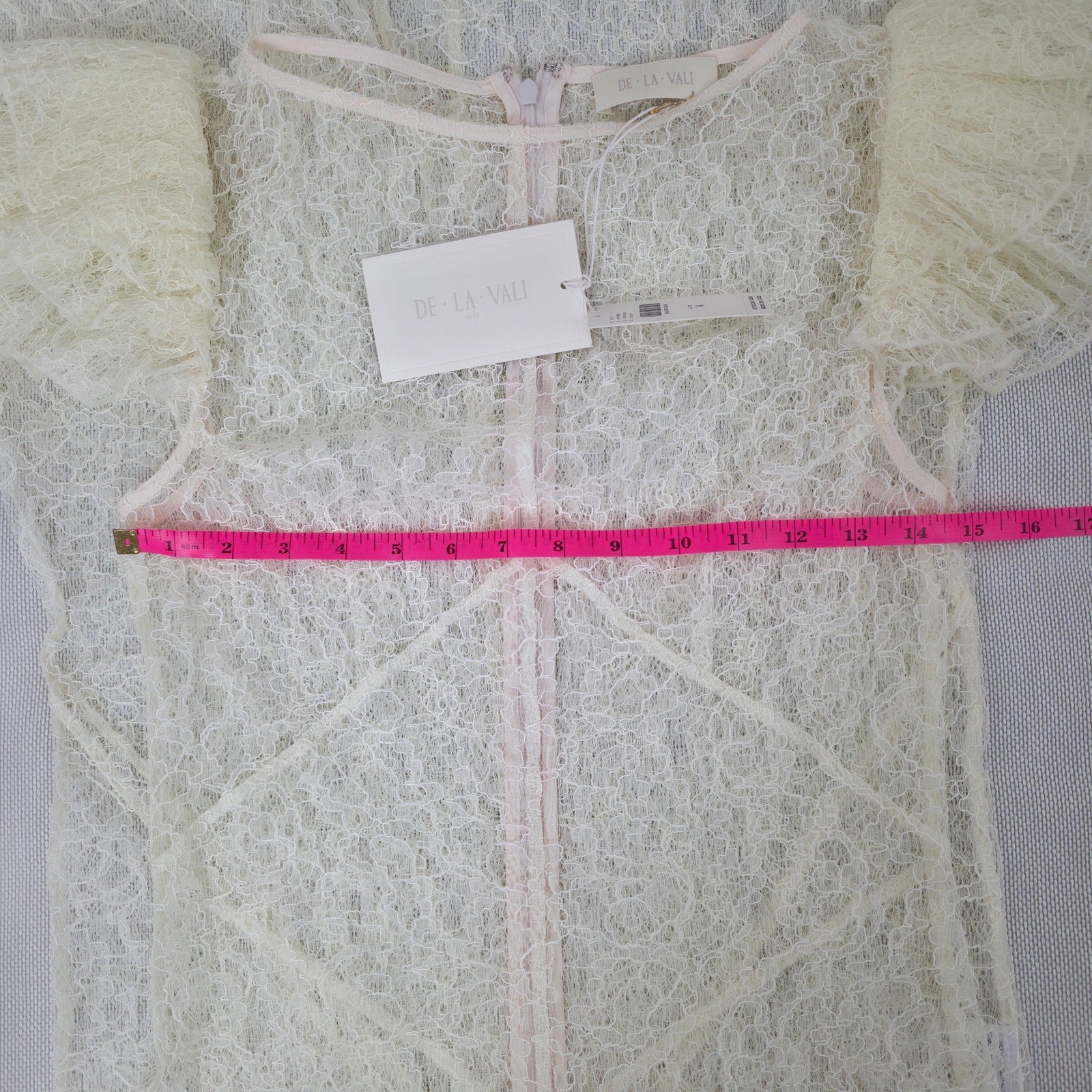 DE LA VALI Ivory Nephele Lace Fishtail Maxi Dress Ivory Sz US 4 NWT